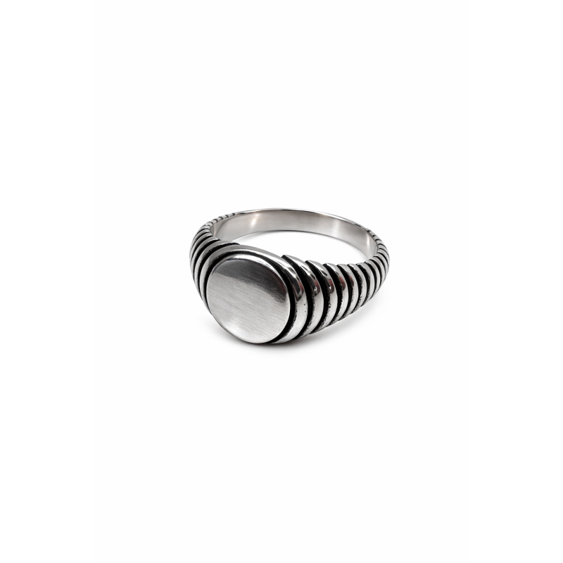 Its engraved lines create deep, almost symbolic layers, like marks shaped by time. The brushed top softly catches the light, while the slightly oxidized grooves enhance the relief and give the piece a raw, authentic, timeworn character. Designed as a modern talisman, this ring makes a statement without excess. It does not seek shine, but substance. It does not follow trends, it moves through time. A strong piece to wear on its own for a bold look, or stacked with other silver jewelry to enhance its bohemian vintage spirit.